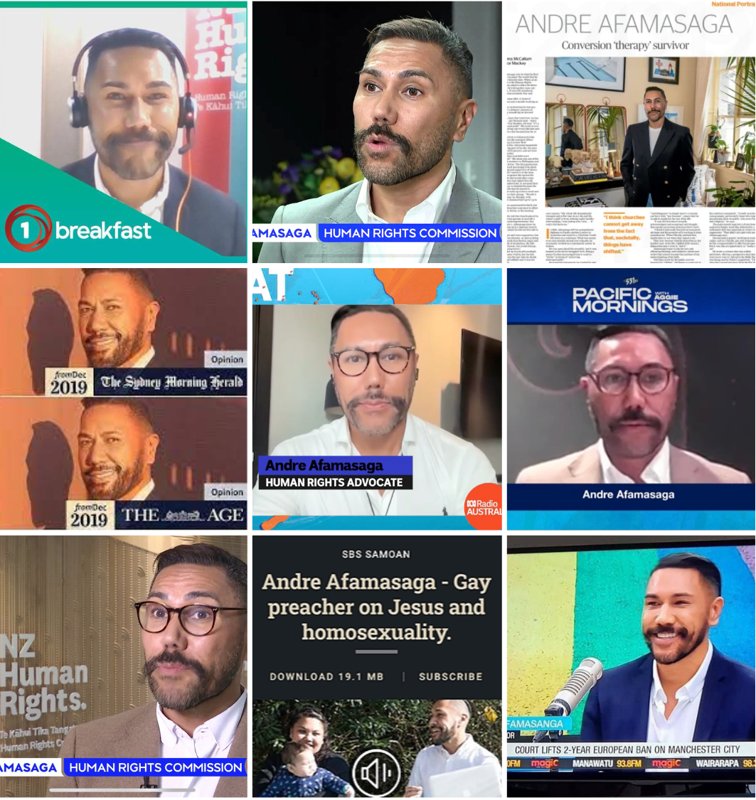His belated self-acceptance sadly came after enduring 15+ years of conversion practices (or ‘conversion therapy’). Wanting to prevent others from self-hate and other harms, Andre subsequently began publicly advocating for Rainbow/LGBTIQ+ peoples to be accepted in religious and cultural settings. At the end of 2019, at a time of intense homophobic debate in the ‘Israel Folau saga’, he came out publicly as gay, in a viral opinion piece in the Sydney Morning Herald that was also published in The Age (Melbourne), Stuff (NZ), and the Samoa Observer. His lived experience of being a church Pastor, and surviving conversion practices would become invaluable to his human rights work. He worked on the team that developed the policy for the Conversion Practices Prohibition Legislation Act before New Zealand’s Parliament passed it into law. And, he subsequently became the senior manager overseeing the establishment of the Human Rights Commission’s civil redress scheme.